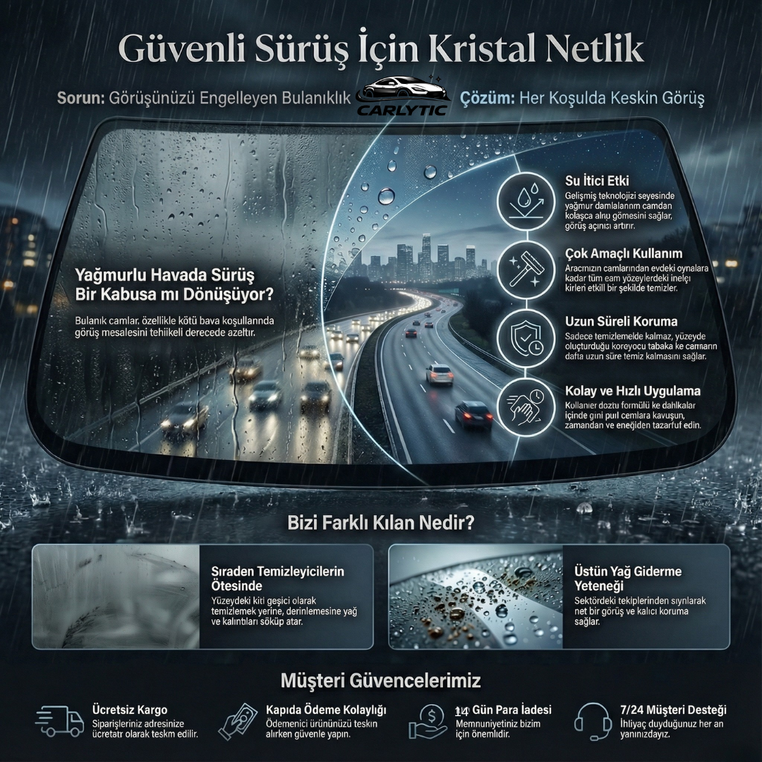 Sektördeki rakiplerden sıyrılan bu ürün, üstün yağ giderme yeteneği ve çok amaçlı kullanımı ile net bir görüş ve uzun süreli koruma sağlar.